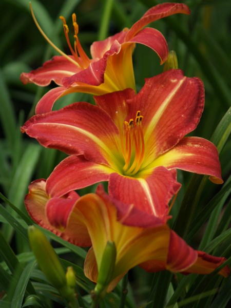 Broadleaved red self above glowing yellow throat;