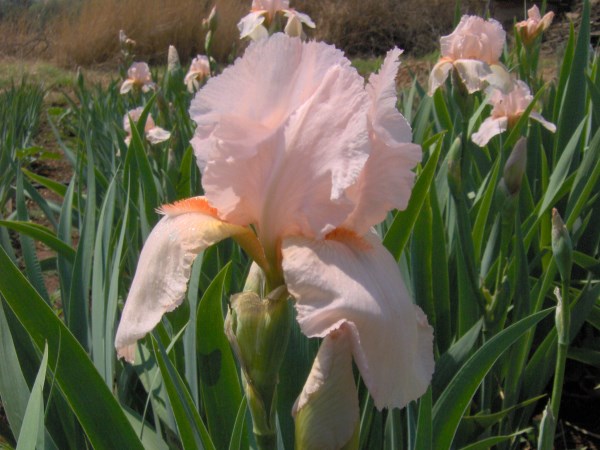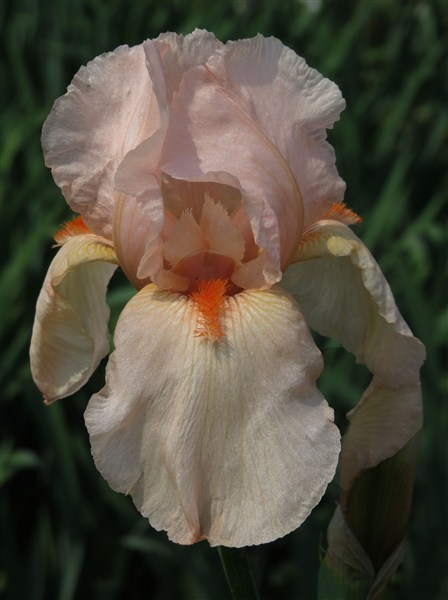Soft Flamingo pink self; Beard: Tangerine; Scape height : 87 cm; Early midseason bloom; Lightly ruffled; Prolific growth and flowering pattern.