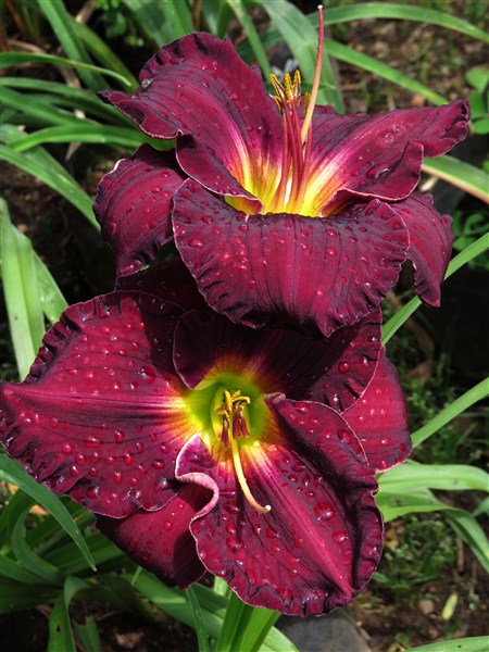 Deep Plum self above chartreuse throat; Scape height: 90 cm; Flower size: 15 cm; Prolific growth pattern; Excellent bud count; Good waxy substance; Reblooming.