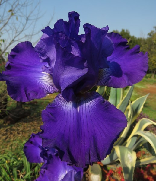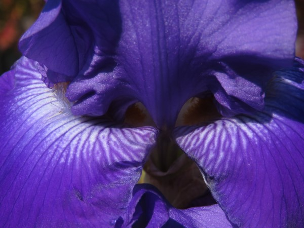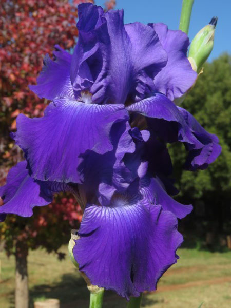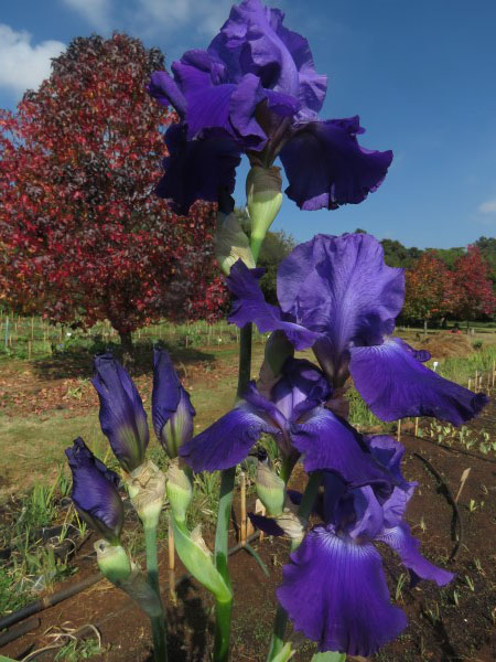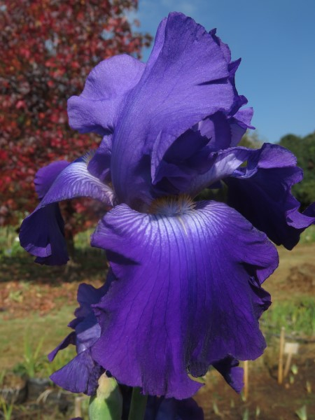 Standards: Velvety deep purple self, white markings on hafts;