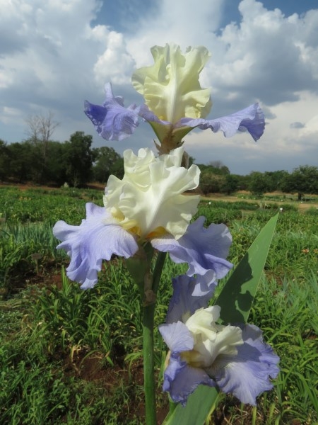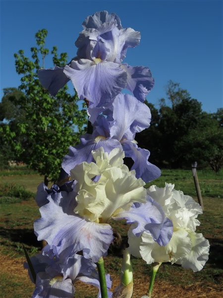 ‘ … Perfectly arched near-white standards above round flaring medium blue falls are gifted with wide wave-like ruffles … ‘