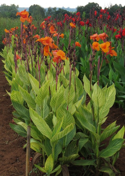 The contrast between the eye catching glowing orange blooms and variegated foliage stands out from a distance …